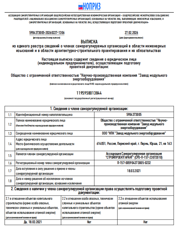 Выписка СРО НОПРИЗ